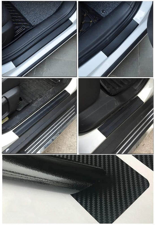 4 x Protections Seuil Porte de Voiture En Carbone 4D Universel Noir