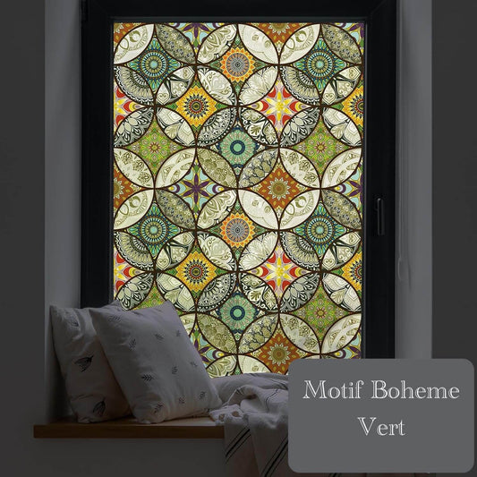 Film Adhésif Décoratif pour Fenêtre 3D Anti-regards - Motif Boheme Vert