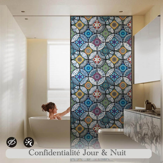 Film Adhésif Décoratif pour Fenêtre 3D Anti-regards - Motif Boheme Violet