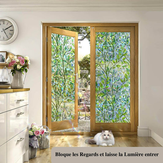 Film Adhésif Décoratif pour Fenêtre 3D Anti-regards - Motif Feuilles Arc-en-ciel