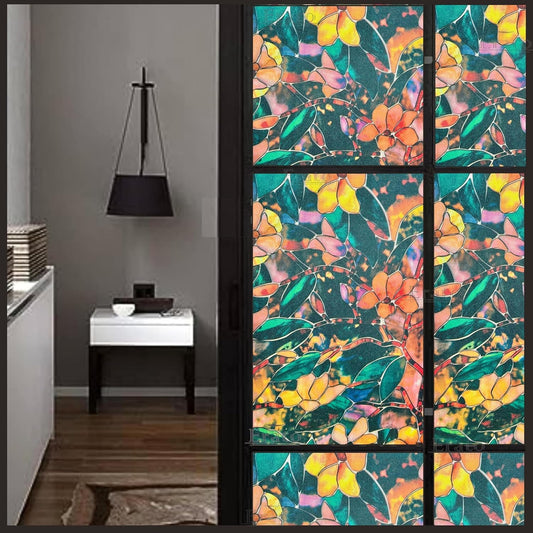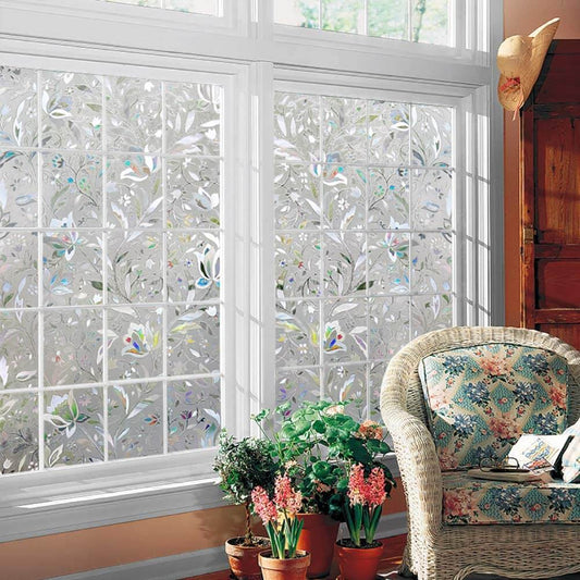 Film Décoratif Anti-regards pour Fenêtre 3D Statique - Motif Fleurs