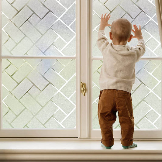 Film Décoratif Anti-regards pour Fenêtre 3D Statique - Motif Carreaux