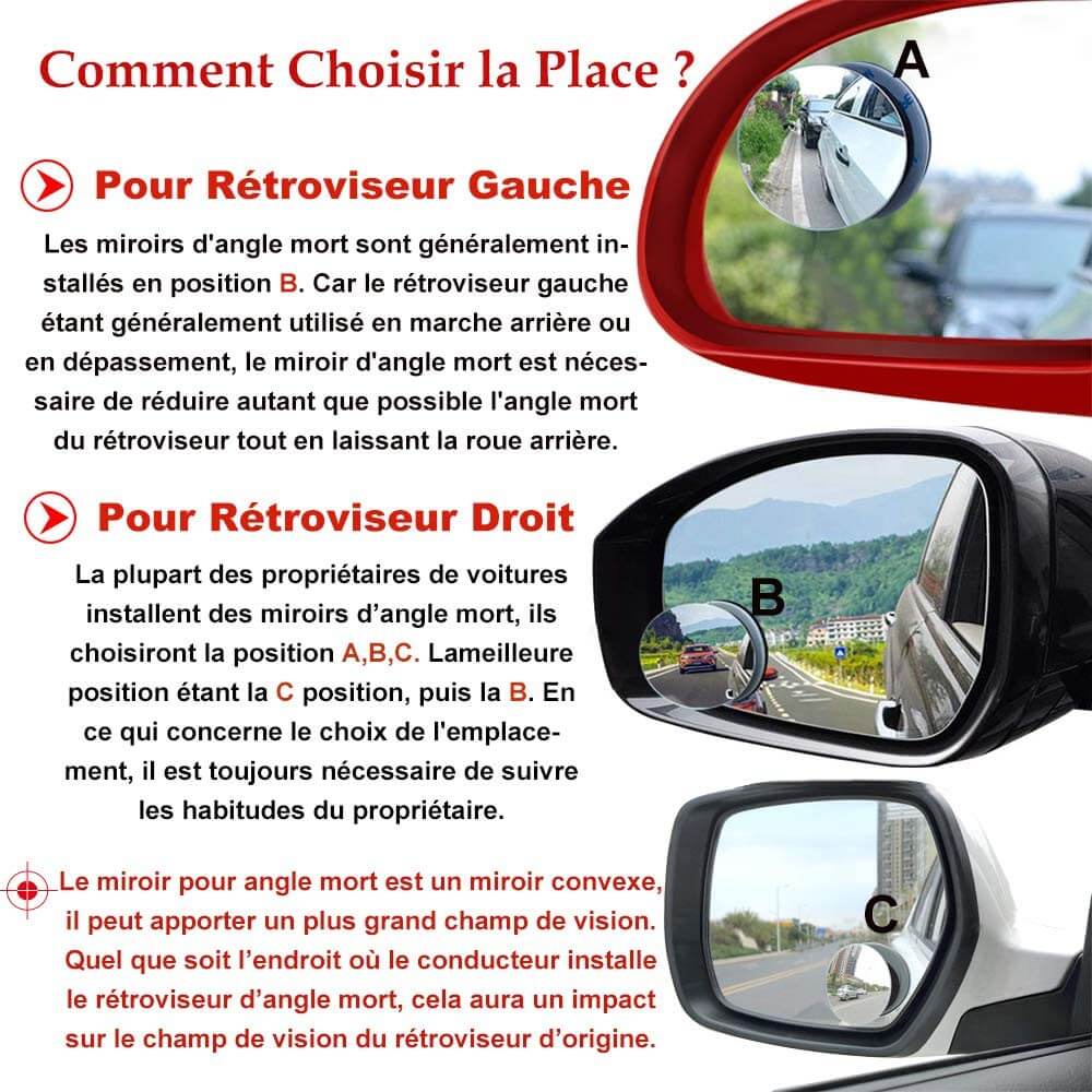 - Rétroviseur multifonctions d'angle mort : Étendez votre champ de vision et voyez plus clairement les toutes les angles.