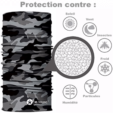 - Cache-cou & Bandana multifonctions très élastique et sans coutures. Haute respirabilité et contrôle de l'humidité.