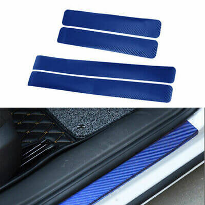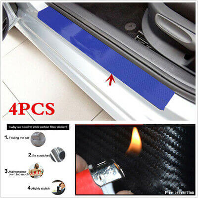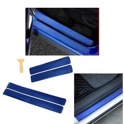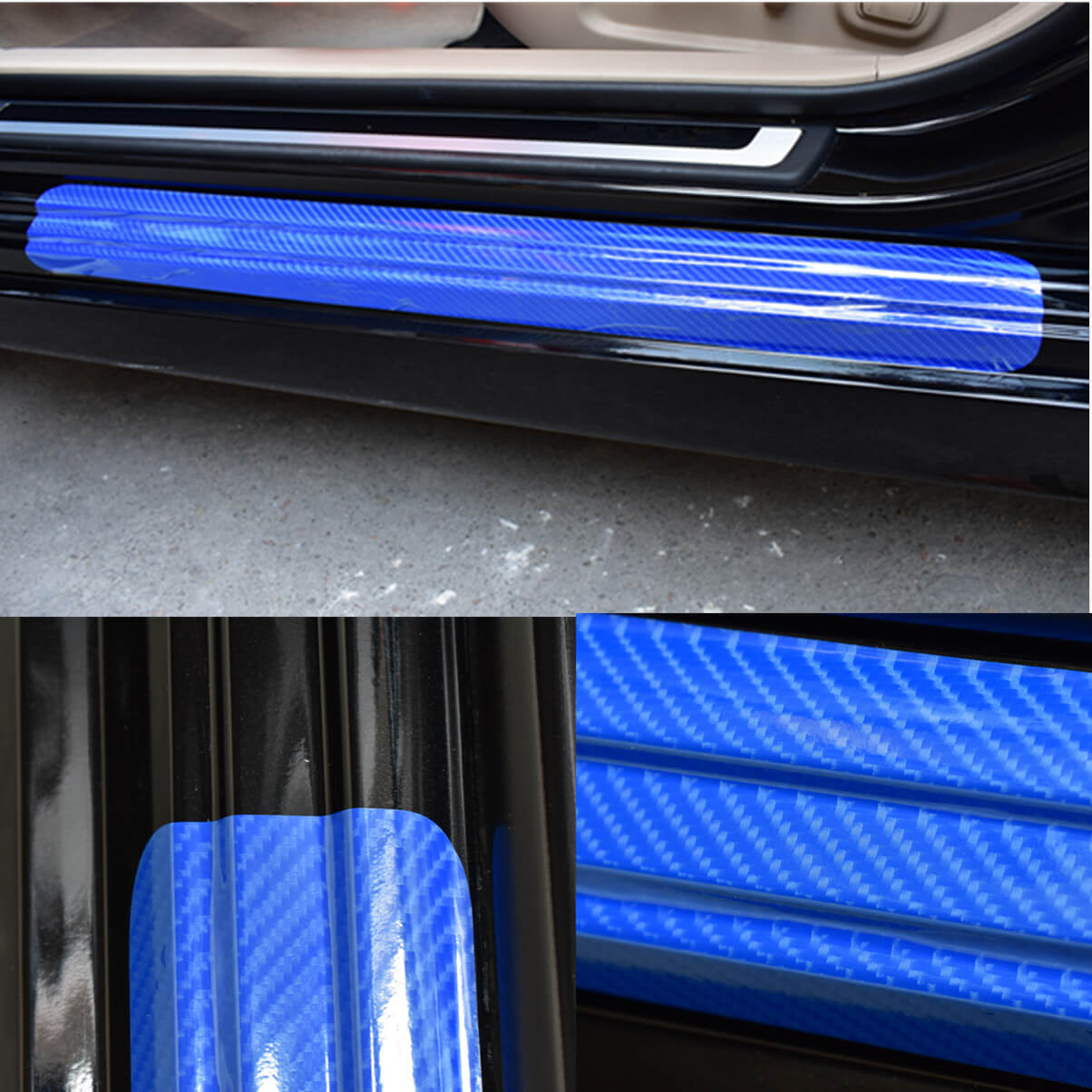 4 x Protections Seuil Porte de Voiture En Carbone 4D Universel Bleu