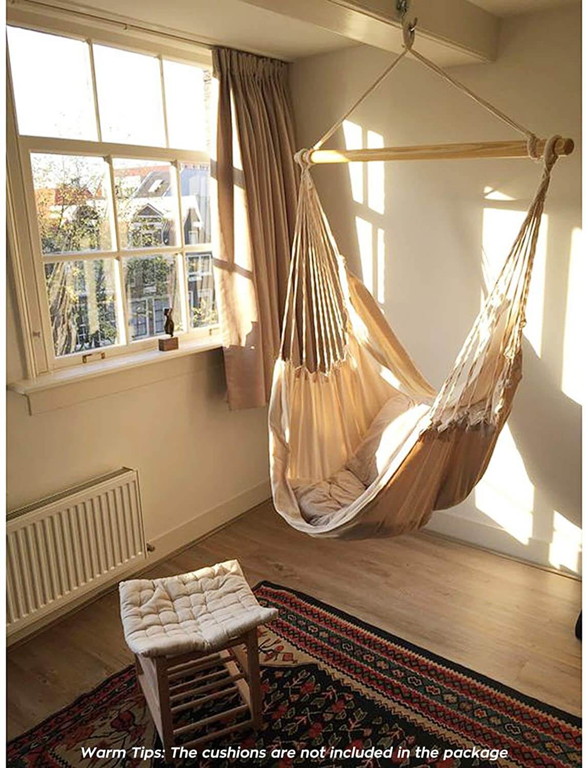 Idéal pour adultes et enfants : Ce fauteuil hamac comprend un lit en tissu solide impossible de s'effondrer. Lorsque vous vous allongez dans ce fauteuil suspendu doux et très confortable, vous vous détendez complètement.