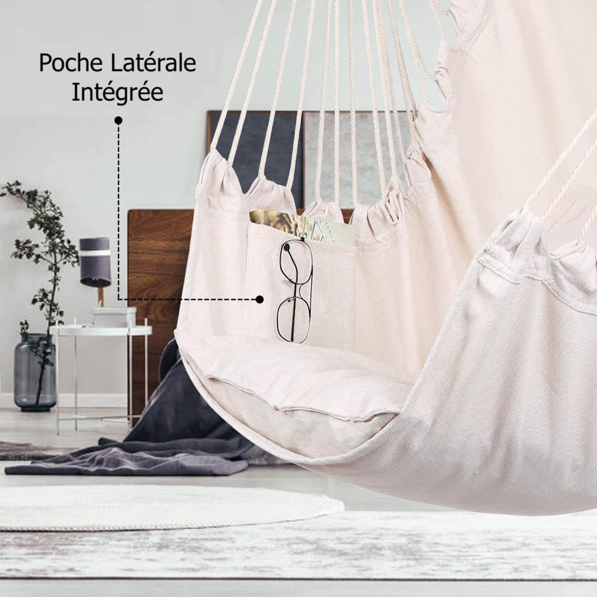 Fauteuil Suspendu Balançoire Hamac en Coton - Beige