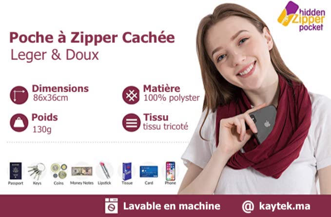 Echarpe à Poche Zipper Cachée Unisexe - Bordeaux