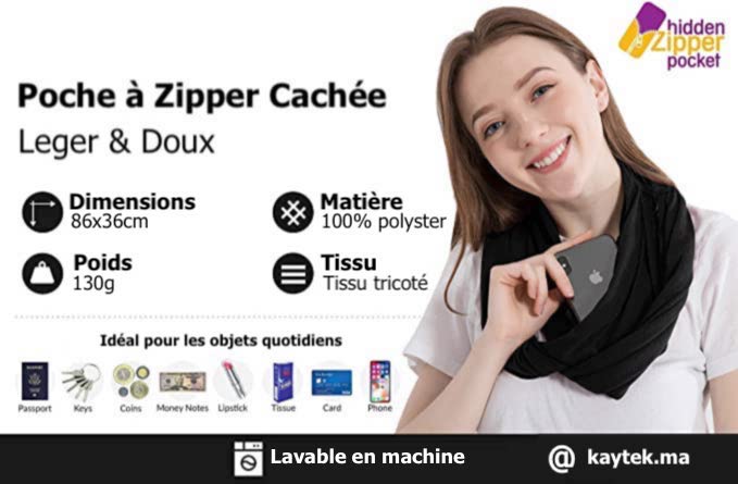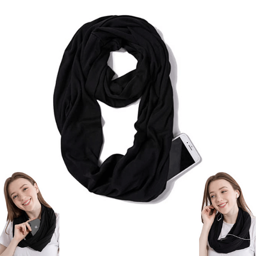 Echarpe à Poche Zipper Cachée Unisexe - Noir