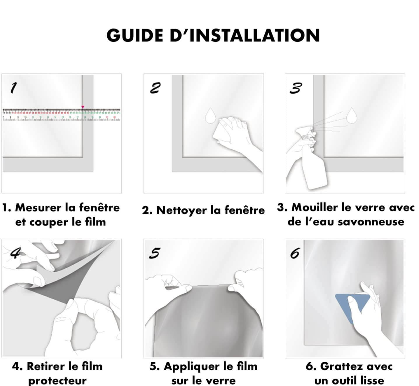 - Pas de colle, facile à fixer et à enlever. Autocollant statique, appliquer directement dans la fenêtre (sans colle) après enlever le film protecteur, réutilisable.