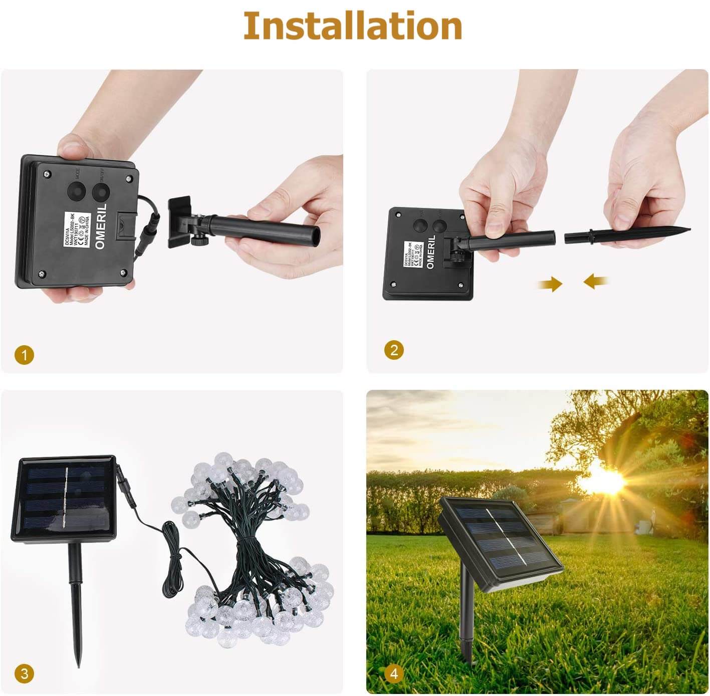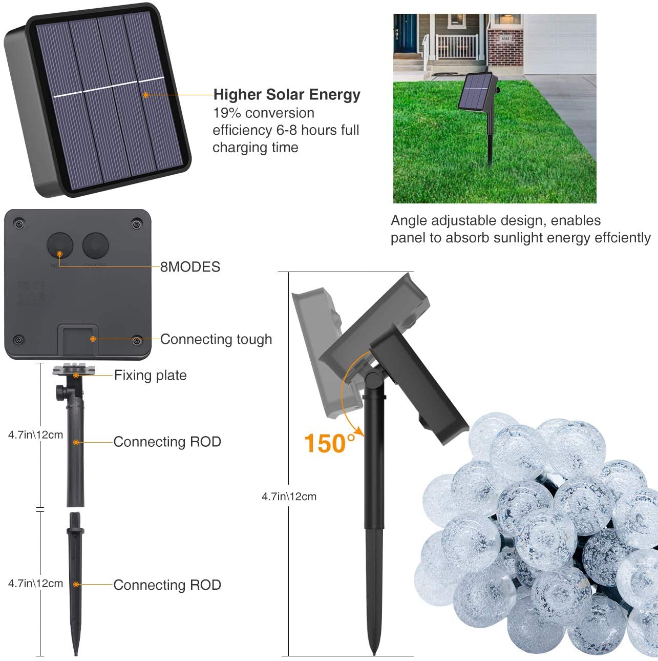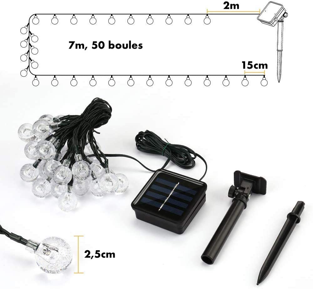 - 50 petites boules LED, fil souple de 7 mètre, Étanchéité IP44 : (longue durée de vie) Guirlande LED solaire composée de 50 petites boules et longueur total de guirlande de 7 mètres, idéale pour la décoration intérieure et extérieure, pas besoin de s'inquiéter du jour pluvieux avec une étanchéité IP44