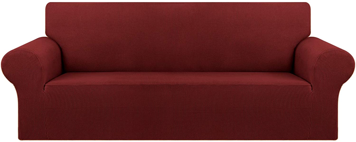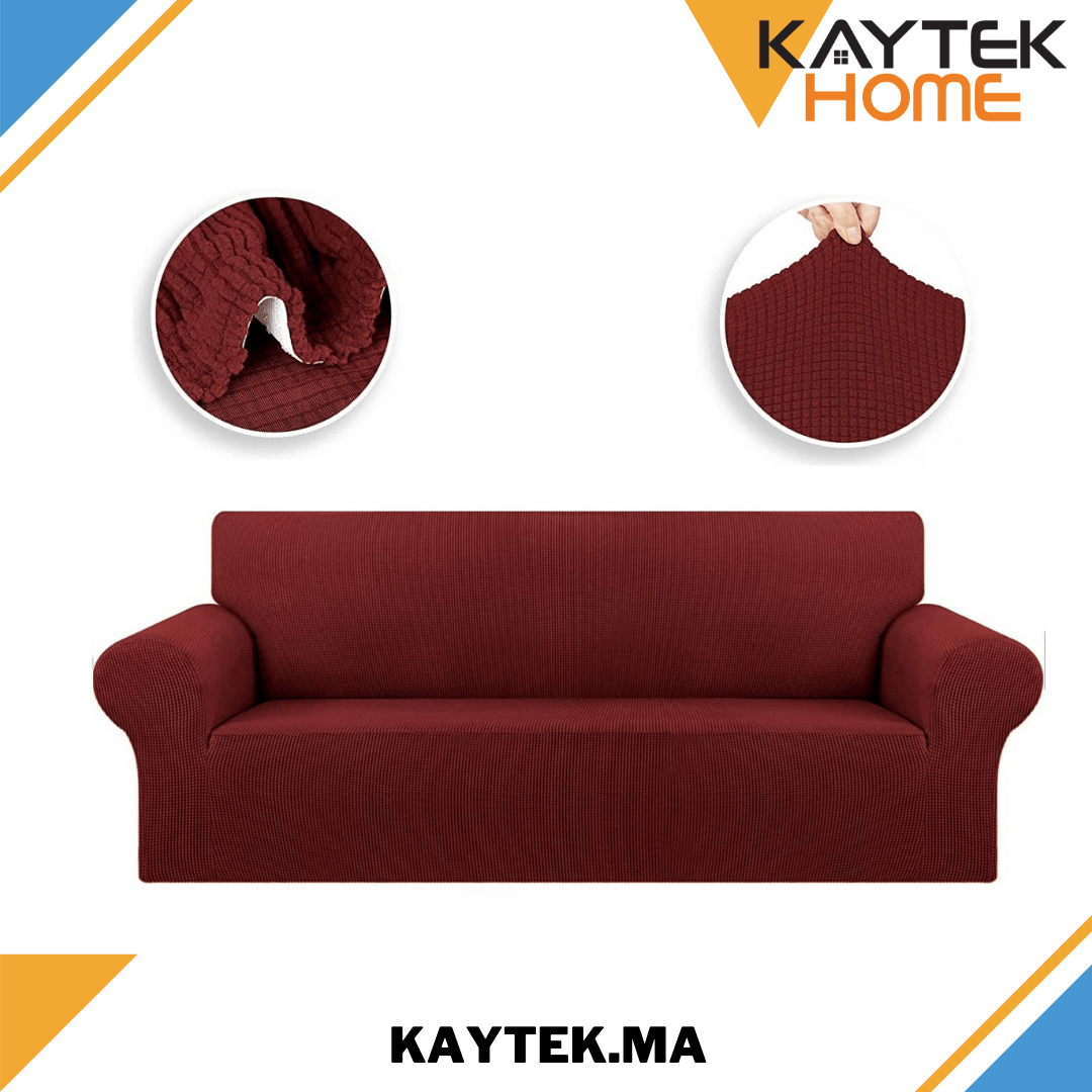 Housse Canapé Extensible à Tissu Jacquard - Rouge Bordeaux