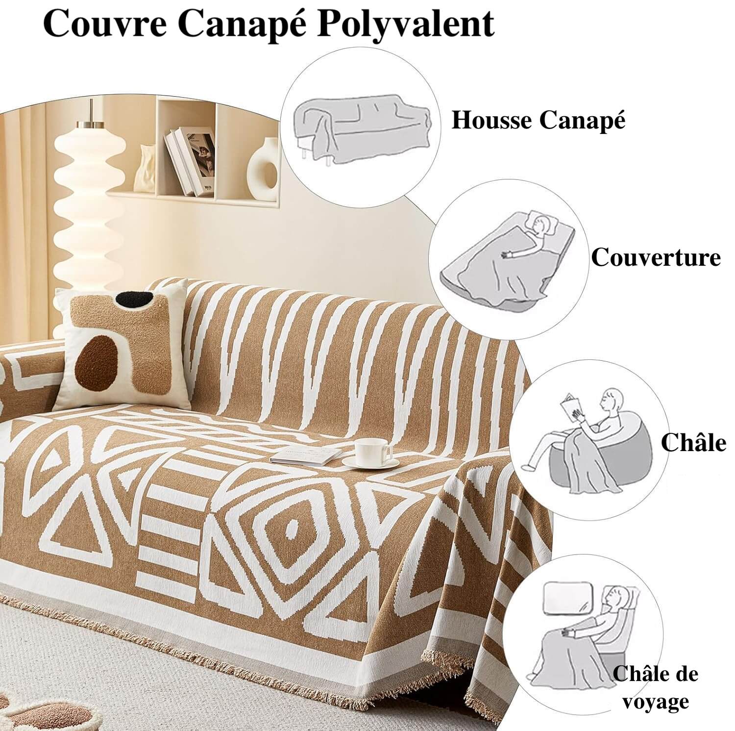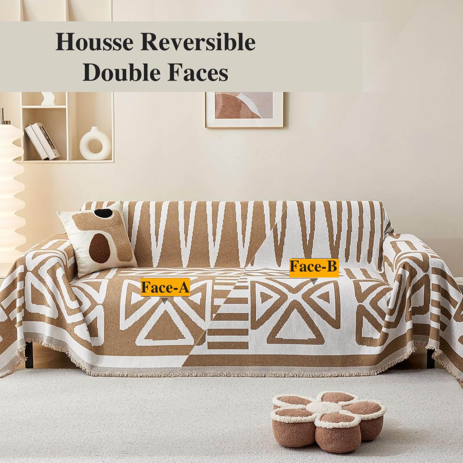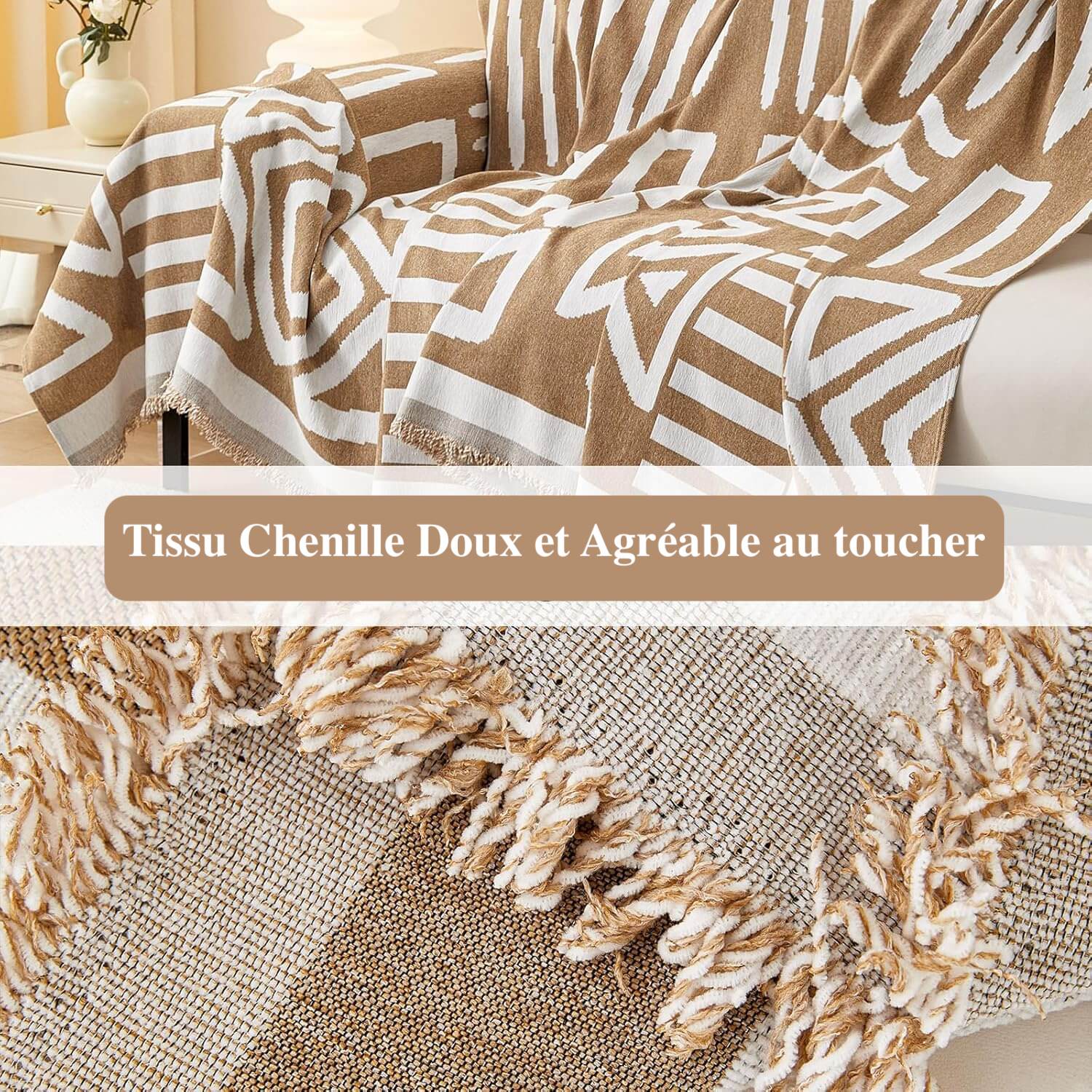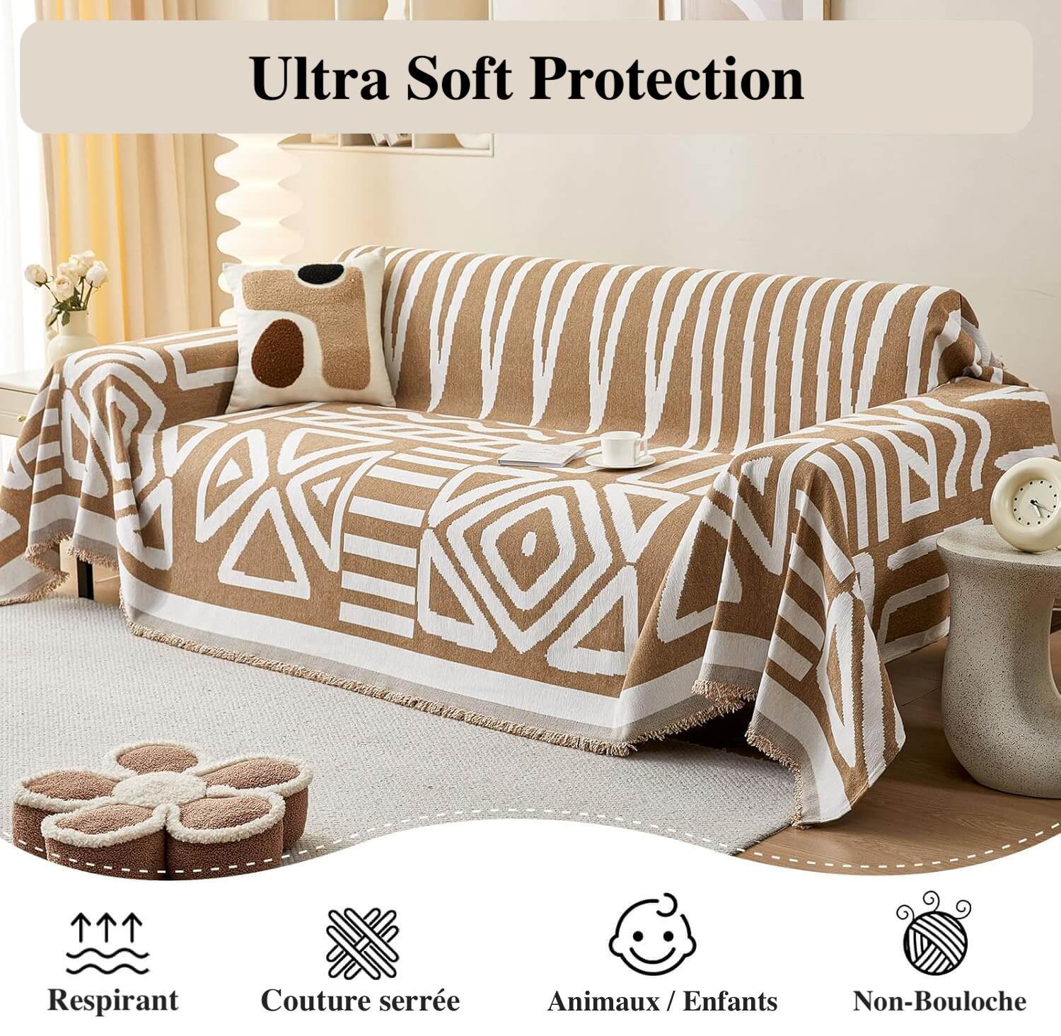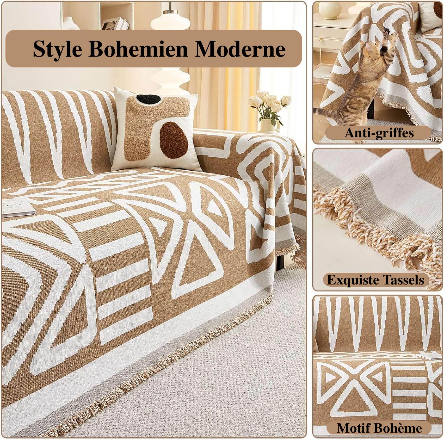 Housse Couverture Canapé Bohémien Anti-Griffes en Tissu Chenille Double Face - Beige