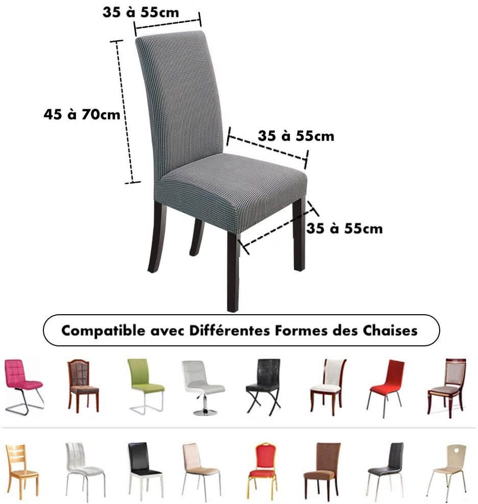 IMPORTANT : Les housses sont en tissu élastique s'adapte à toutes les formes de chaises SANS ACCOUDOIRS