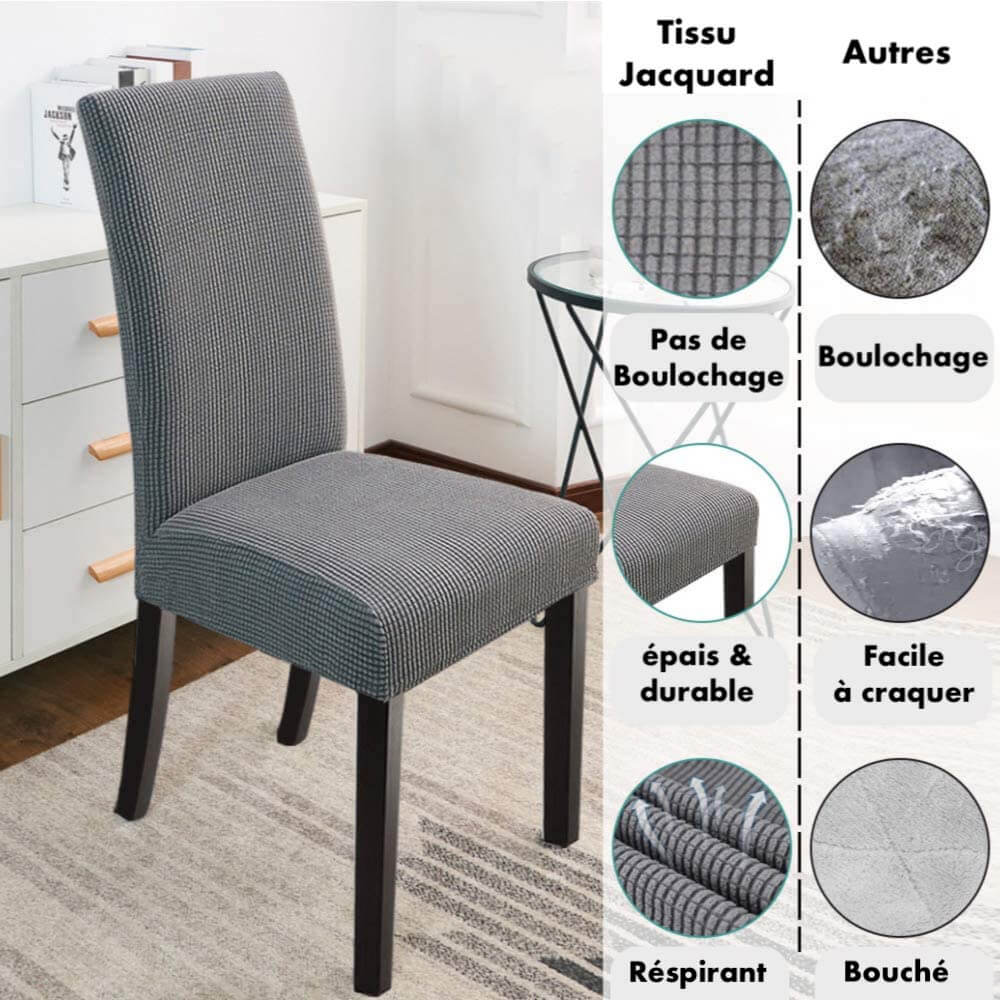 Housse de Chaise Extensible à Tissu Jacquard - Gris
