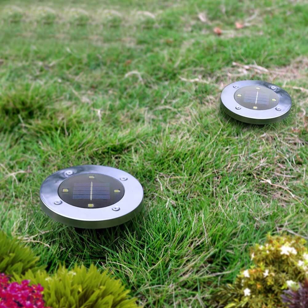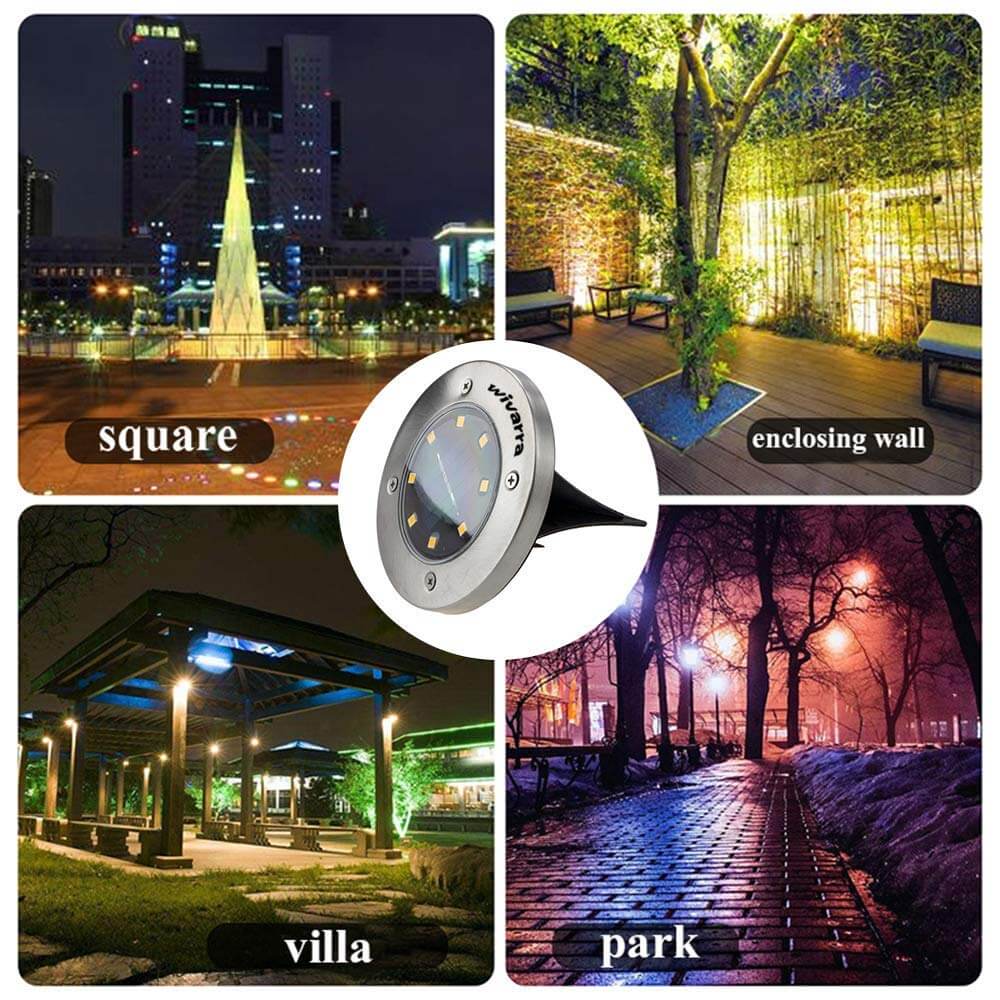 Lampe de jardin LED : Lampe solaire extérieures rondes avec 8 LEDs, tension 1.2V / 0.5W, lumière blanche couvre jusqu'à 4 mètres. Plus lumineux que les lumières similaires sur le marché.