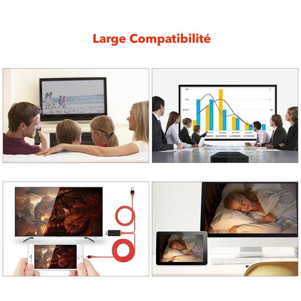 Assistance étendue : ce câble HDMI prend en charge les appels vidéo de FaceTime, Skype, WhatsApp; vidéos, images, jeux, diaporamas sur Facebook, YouTube, Instagram, Twitter, IDMB, Microsoft Office, etc.