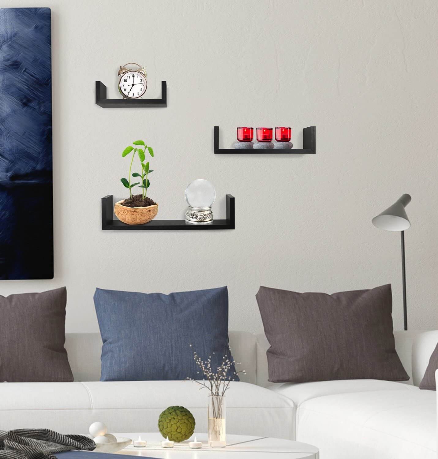 Lot de 3 Étagères Murales Flottantes Forme "U" en Bois MDF - Noir