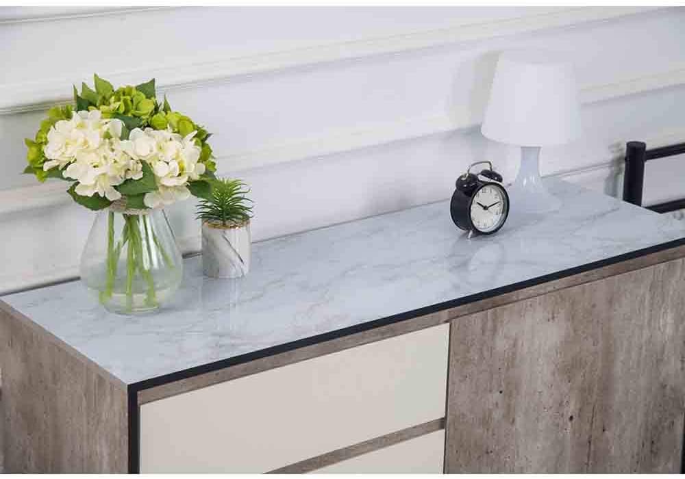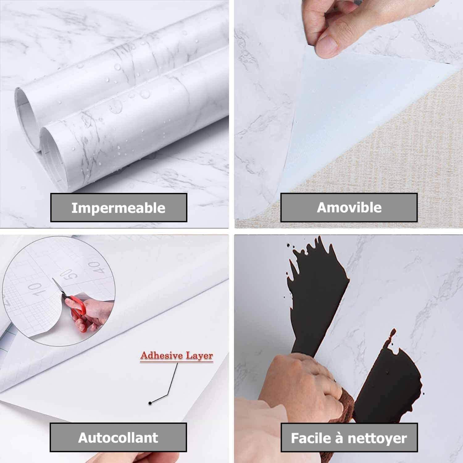 - Haute Qualité :Ce papier adhesif marbre matériau PVC éviter la combustion, éviter les moisissures, anti-bactérien, anti-fouling, résiste à l'humidité et aux taches de graisse.Haute qualité avec des textures pour une sensation réaliste et un look, et facile à essuyer avec un chiffon ou un nettoyant, obtenant un nouveau style, donnez un nouveau look à votre maison.