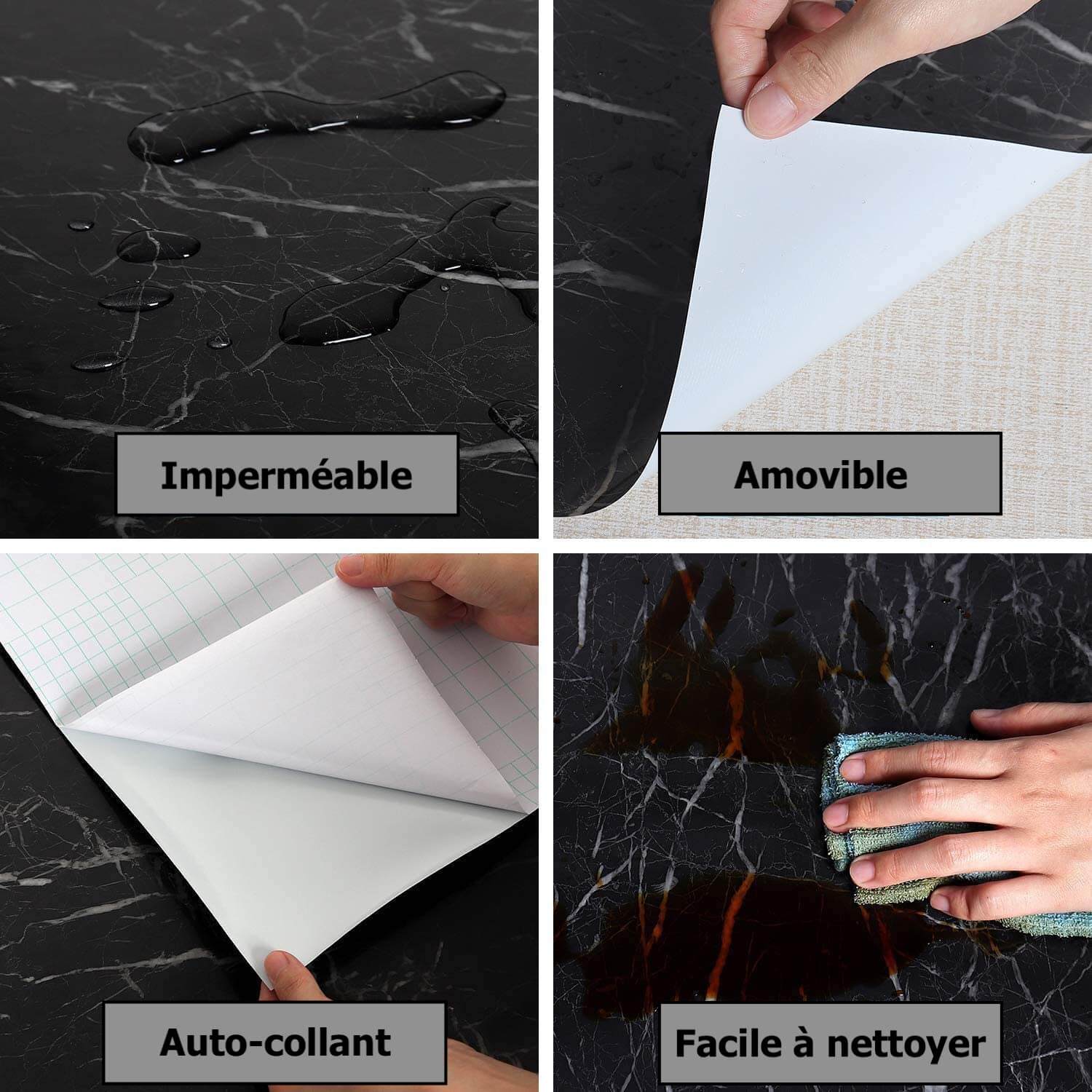 - Haute Qualité :Ce papier adhesif marbre matériau PVC éviter la combustion, éviter les moisissures, anti-bactérien, anti-fouling, résiste à l'humidité et aux taches de graisse.Haute qualité avec des textures pour une sensation réaliste et un look, et facile à essuyer avec un chiffon ou un nettoyant, obtenant un nouveau style, donnez un nouveau look à votre maison.