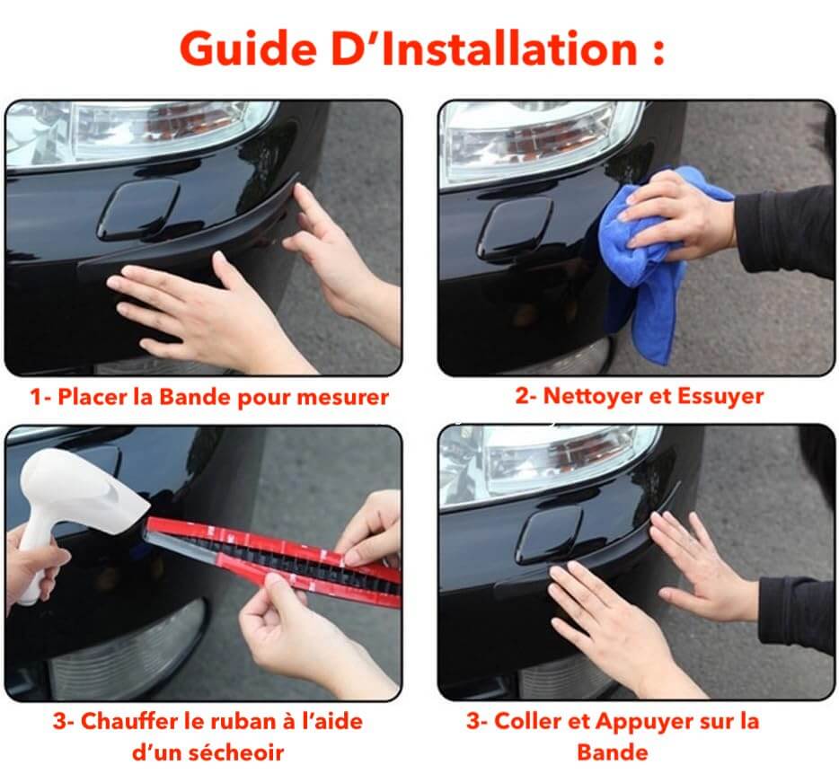 - Facile à utiliser avec du ruban adhésif double face, vous pouvez le coller sur n'importe quel endroit de votre voiture comme le pare-chocs avant, le pare-chocs arrière, le protège-porte, coffre et coins.